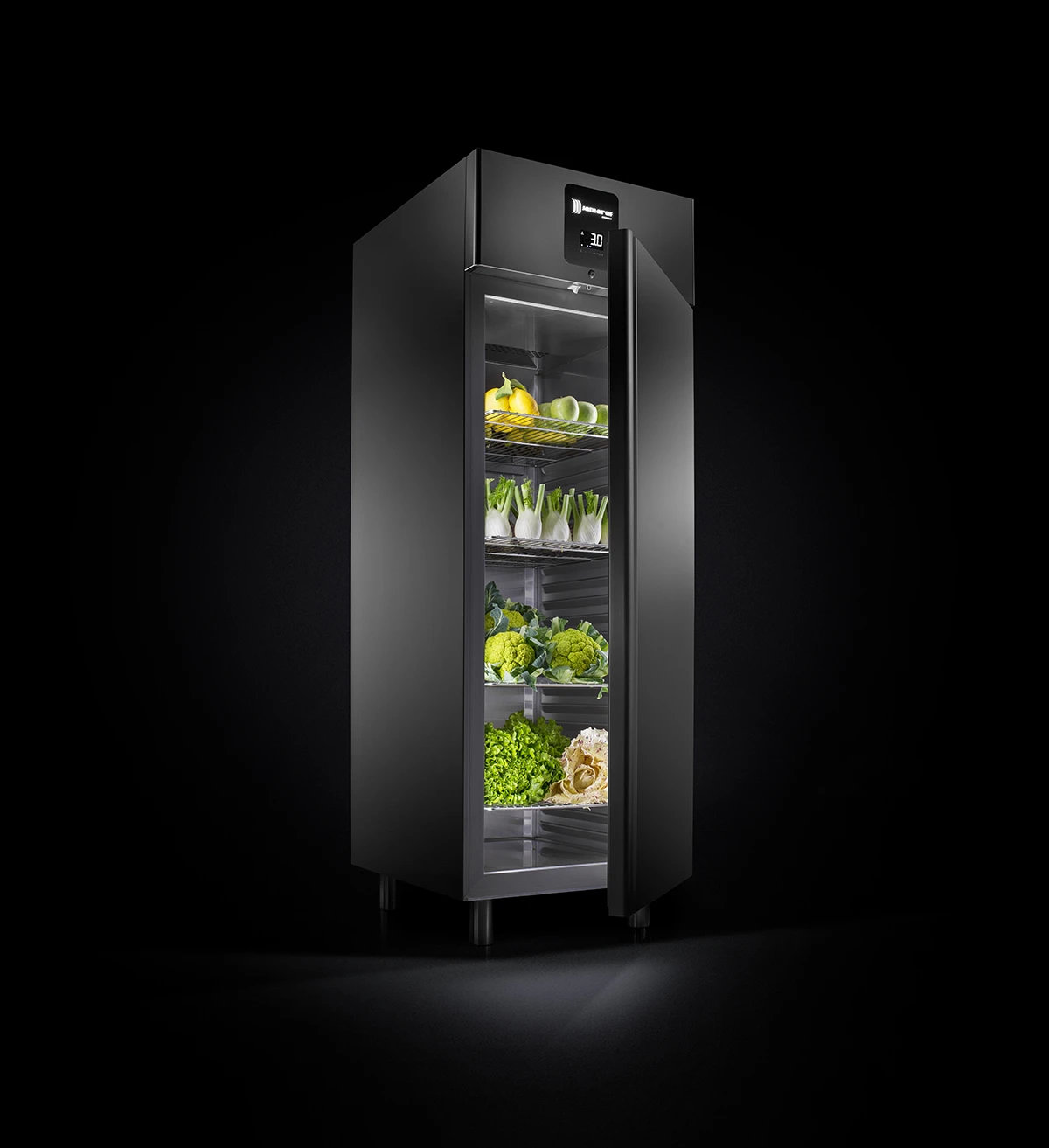 Hohe Leistung und geringer Energieverbrauch mit R290 Kältemittel. Innovatives Kühlsystem mit elektronischen Ventilatoren, Heißgasabtauung und lackiertem Verdampfer für eine bessere Korrosionsbeständigkeit.