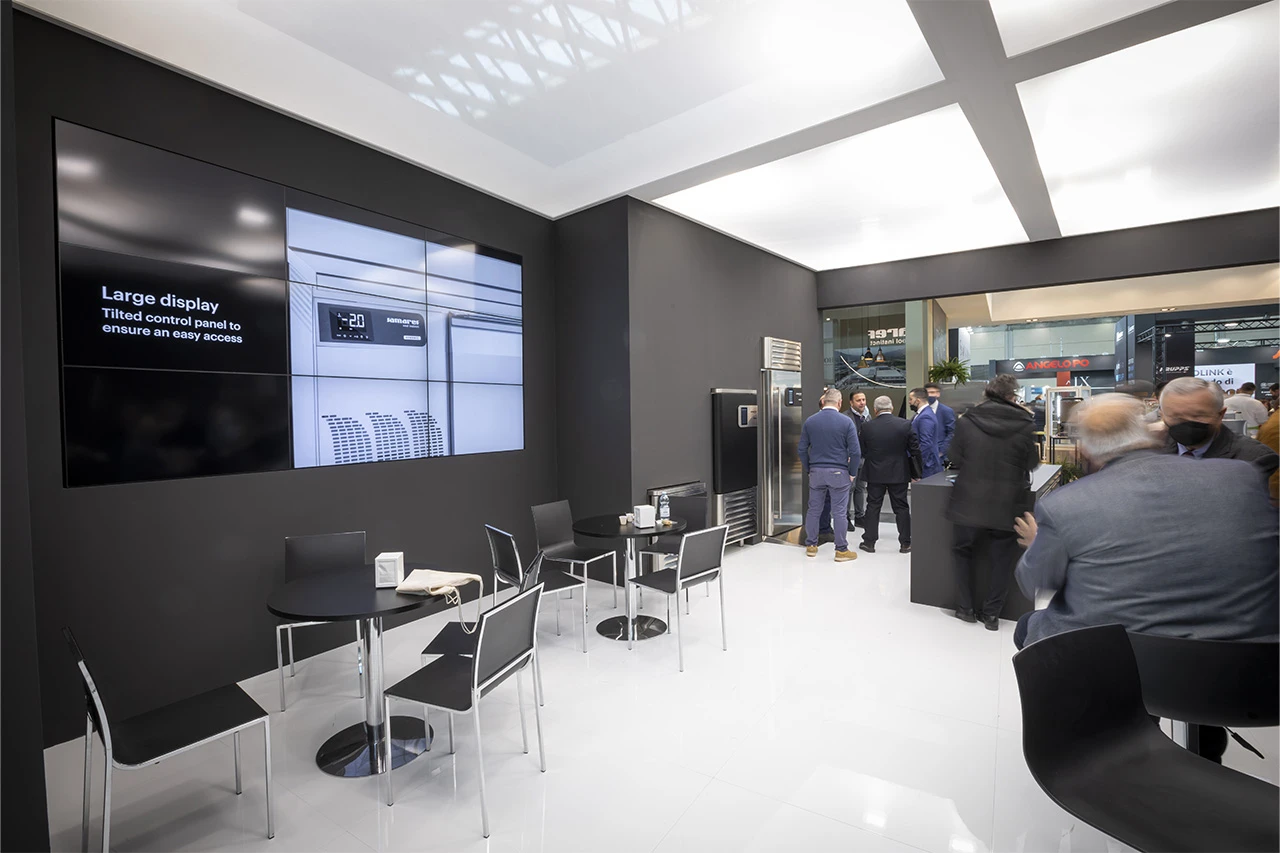 In this splendid setting it was possible to admire closely all the product ranges of the sector such as Evolution and Gelato. The most successful was "Talent": the multifunctional flagship of the company. An innovative and extremely versatile product, designed for the professional who seeks excellence without compromise, also available in a blast chiller version and in the popular steel/black finish.