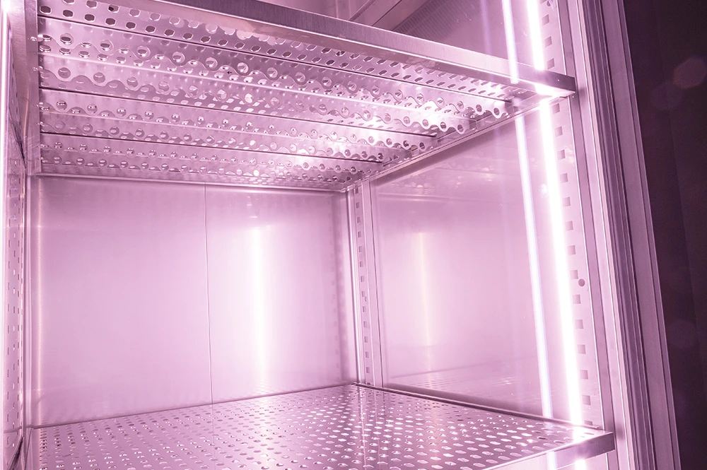 In addition to the already award-winning solutions offered by the machines, such as the “Humidity System” for perfect humidity management or the punctual temperature control system, Samaref has decided to improve by introducing an innovative air treatment system and renewed lighting with pink LEDs.
