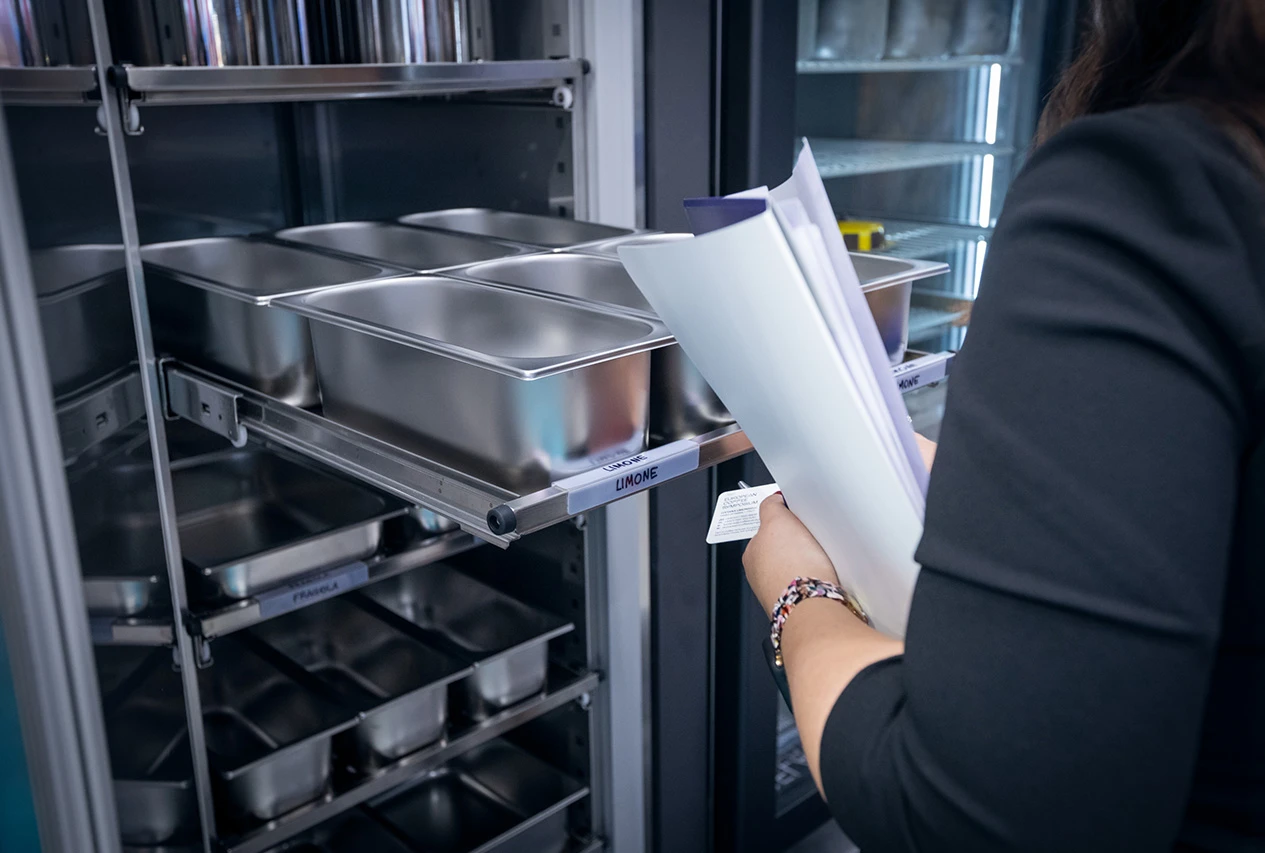 Con Gelato, la gama de productos específicos para la heladería, presentamos un excelente almacenamiento para tartas heladas y helados en tarrinas o carapines. La tecnología de "cajón inteligente" de Samaref fue todo un éxito. Los clientes pudieron probar la comodidad de sacar todas las tarrinas con solo abrir un cajón, de modo que también podían acceder fácilmente a los sabores de la parte superior, inferior y baja de la heladera.