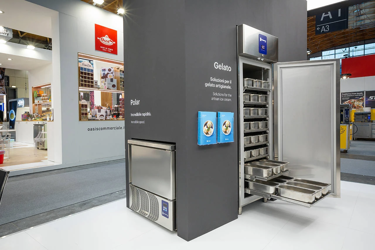 Le rendez-vous professionnel le plus important au monde consacré à la glace artisanale et à l'art de la pâtisserie. Lors de cette édition, les deux nouveautés présentées par Samaref ont connu un succès incroyable : la gamme Evolution, qui se distingue par son processus de fermentation contrôlée innovant, et la gamme Gelato, avec son système révolutionnaire de stockage et de conservation des bacs de glace à l'aide de tiroirs amovibles.
