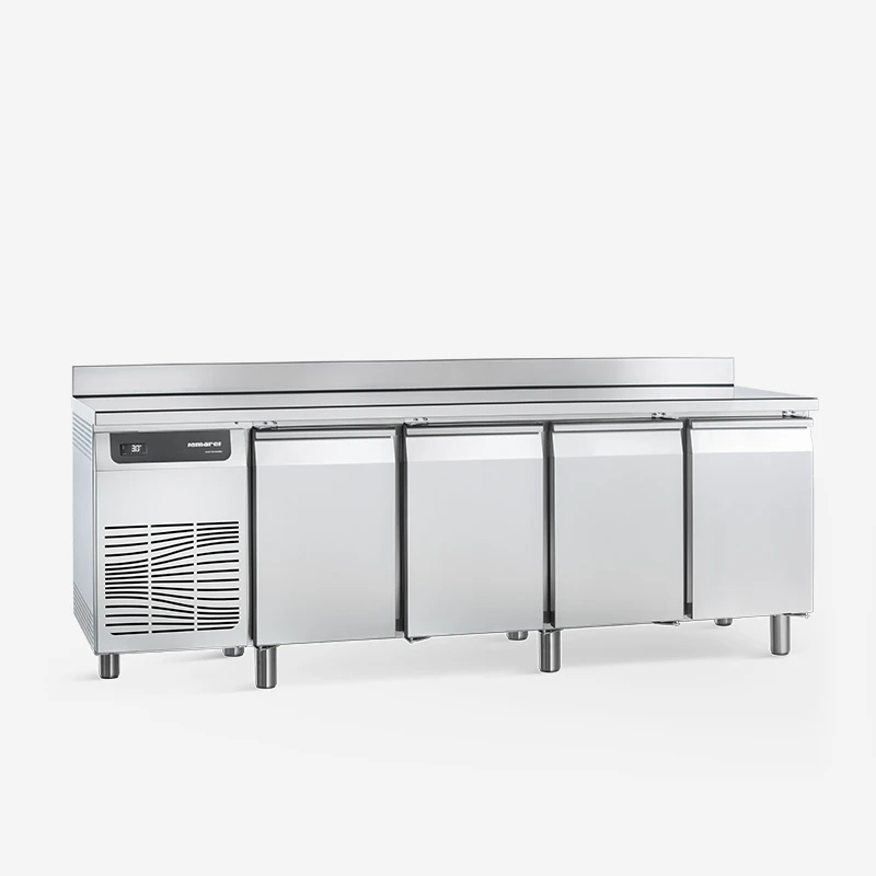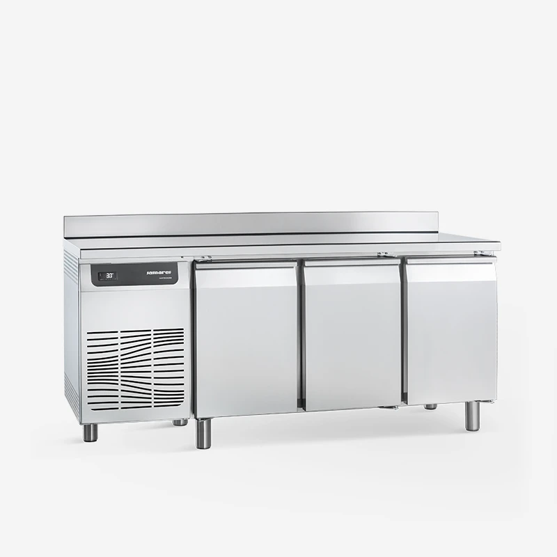 Прочные и надёжные столешницы из нержавеющей стали AISI 304 с закруглёнными краями, звукопоглощающей, водоотталкивающей и огнеупорной поверхностью.