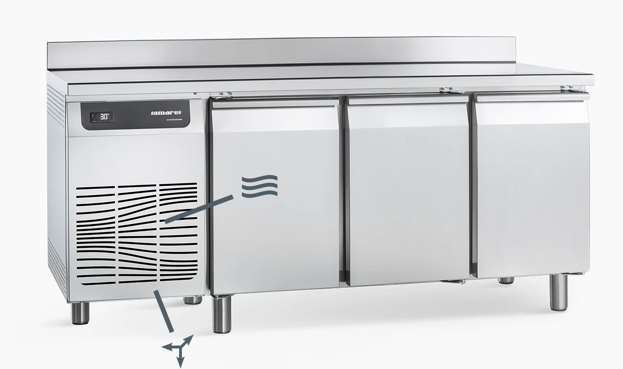 Забор воздуха осуществляется фронтально, в то время как выход горячего воздуха может быть сзади, сбоку или при наличии небольшого пространства - снизу. Оптимальная система вентиляции, исключающая обдувание оператора во время работы.